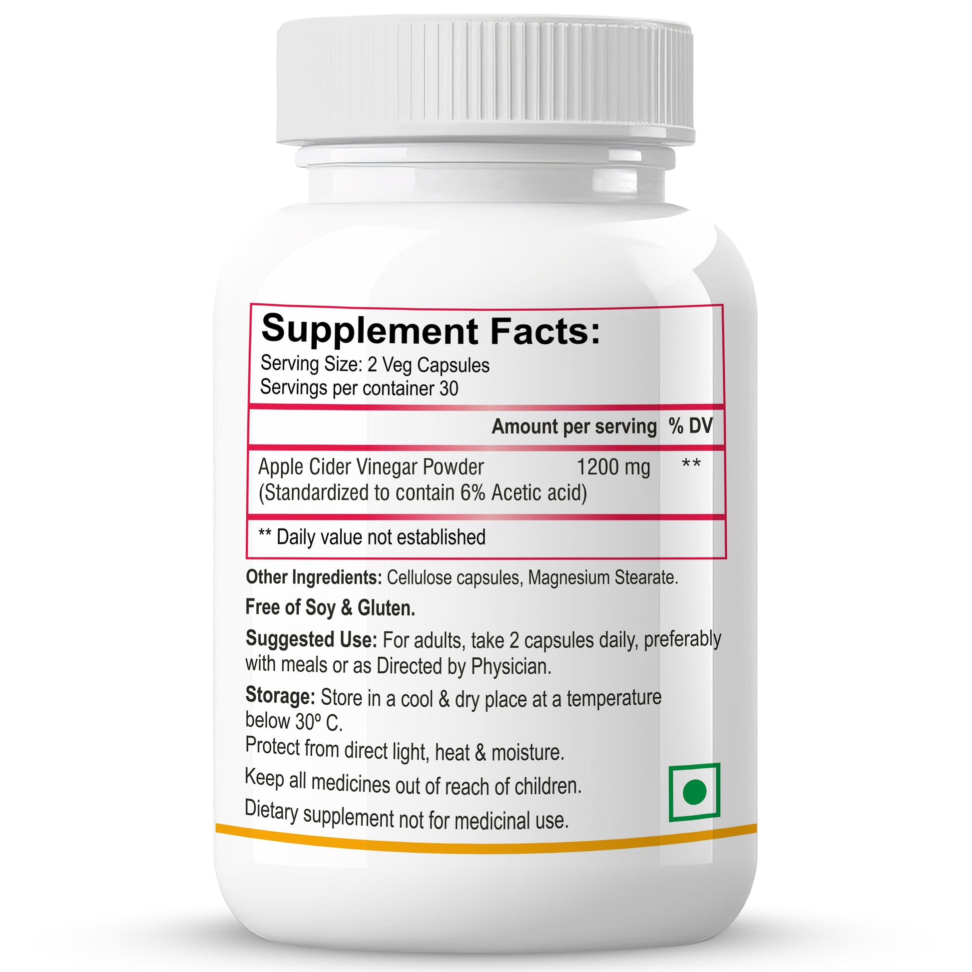 Digestive health support: Apple cider vinegar is believed to support digestive health by promoting the production of digestive enzymes, improving digestion, and reducing symptoms such as indigestion and bloating. Apple cider capsules can provide these potential benefits in a more convenient form.