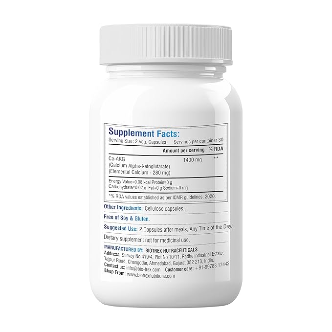 Biotrex Nutraceuticals Calcium Alpha Ketoglutarate CA AKG Supplement Supports Energy & Muscle Strength, Healthy Aging, For Men & Women - 60 Veg Capsules