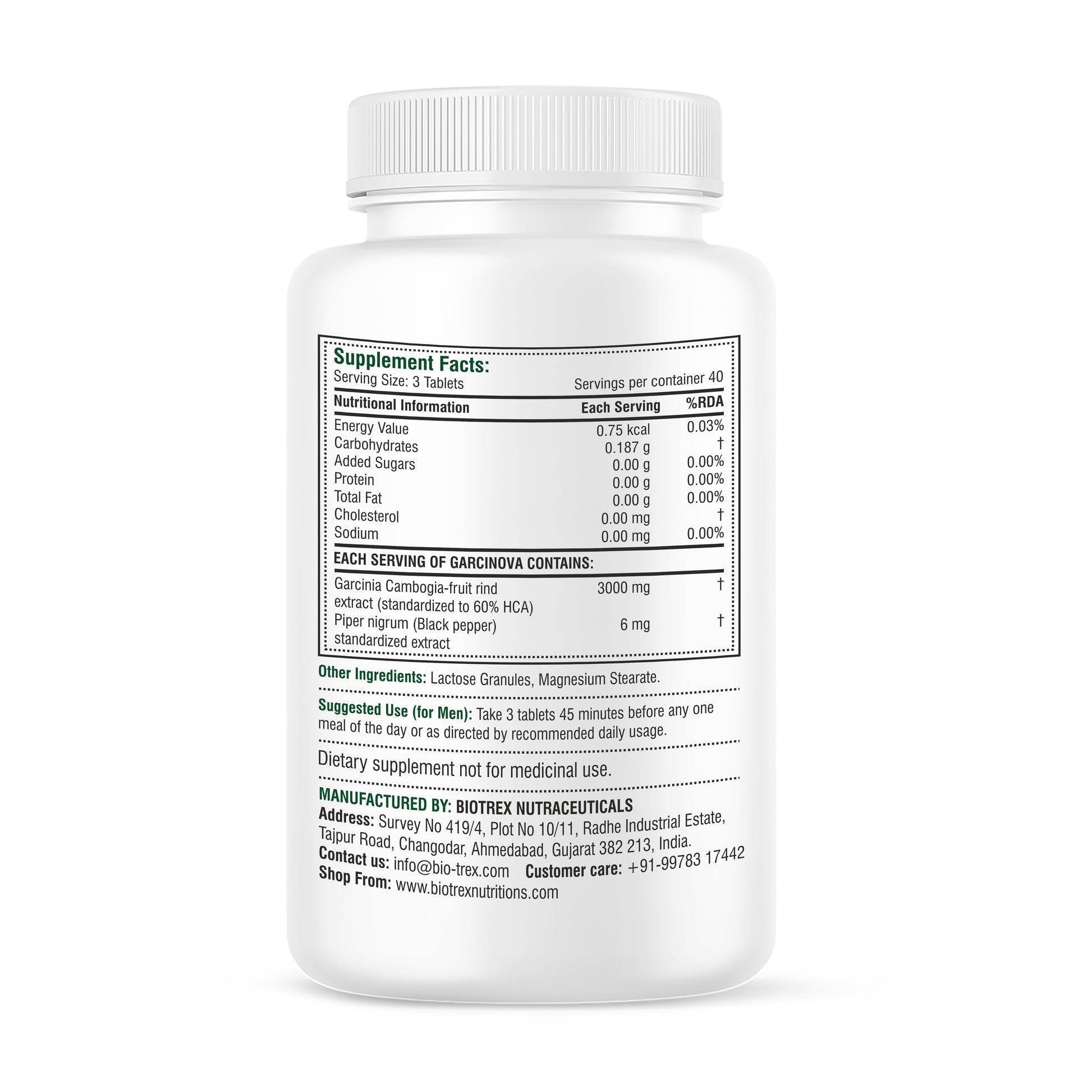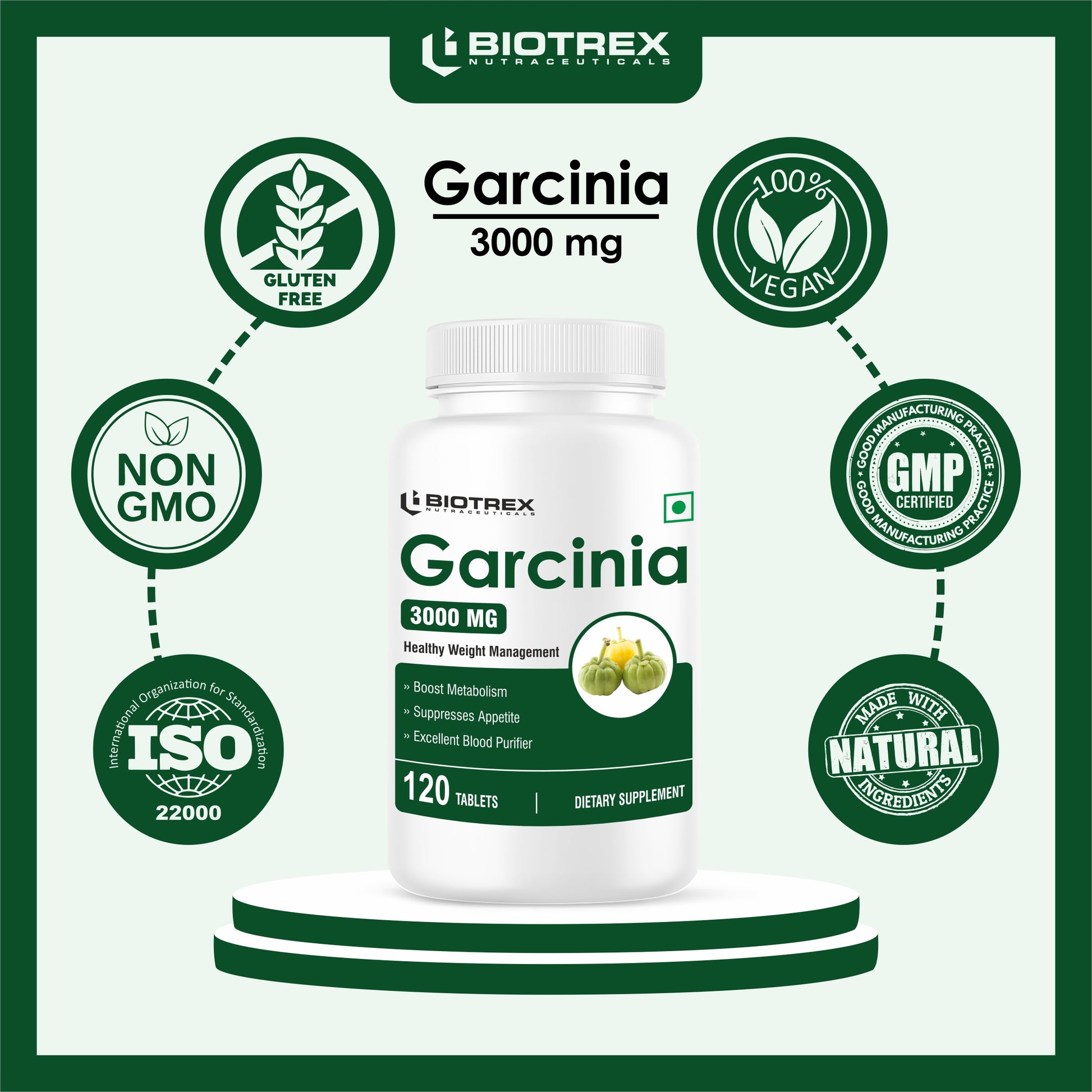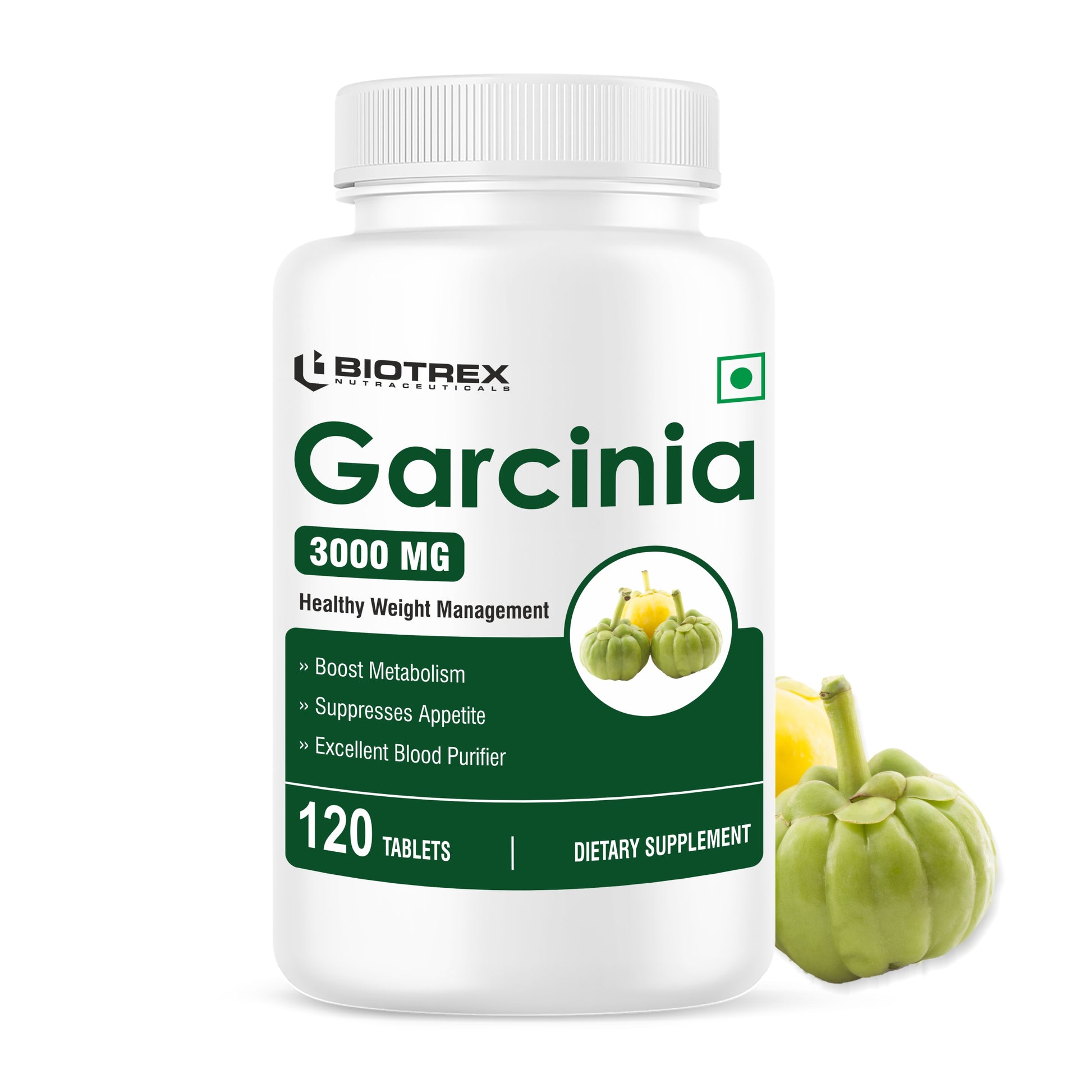 Biotrex Garcinia Cambogia 3000mg 60% HCA High Purity With Piperine 6mg, Boosts Metabolism & Energy Levels, Weight Loss Management, Fat Burner - 120 Veg Tablets