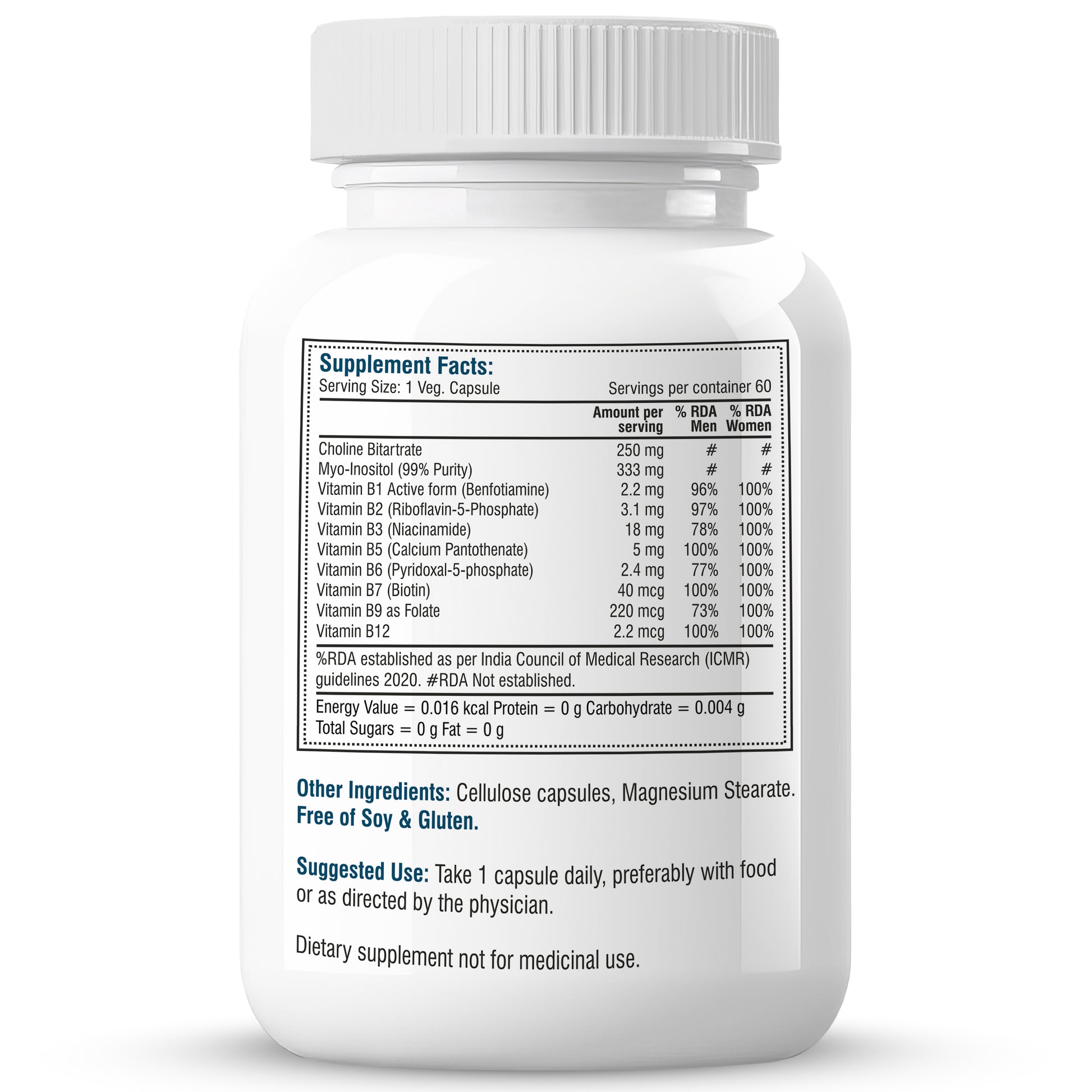 - Antioxidant Supplement: Inositol and Choline supports antioxidant action & Supports Brain Health