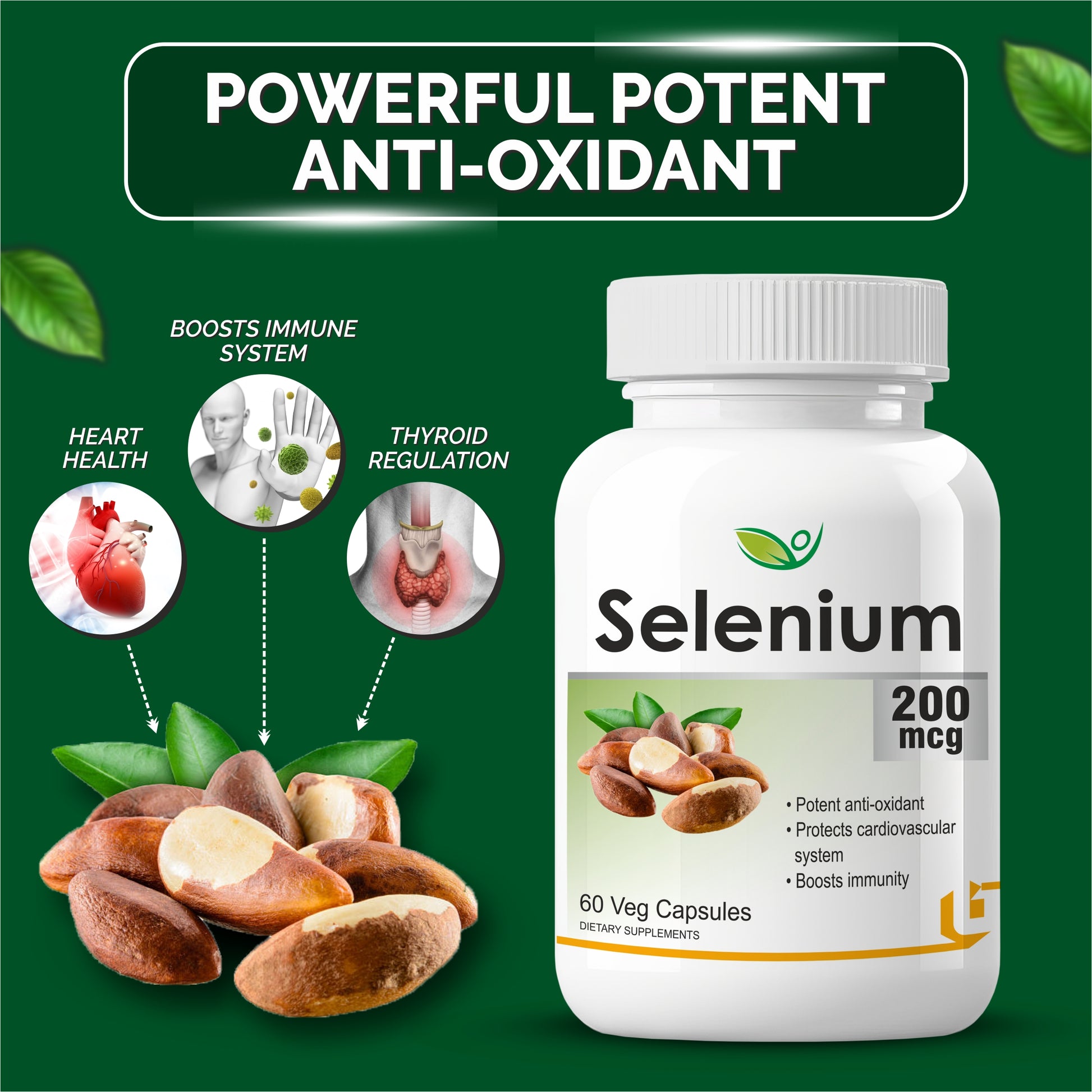 Antioxidant Protection: Selenium acts as a powerful antioxidant, helping to neutralize harmful free radicals in the body. By combating oxidative stress, selenium helps protect cells and tissues from damage and supports overall cellular health. This antioxidant activity is crucial for reducing the risk of chronic diseases and promoting longevity.
